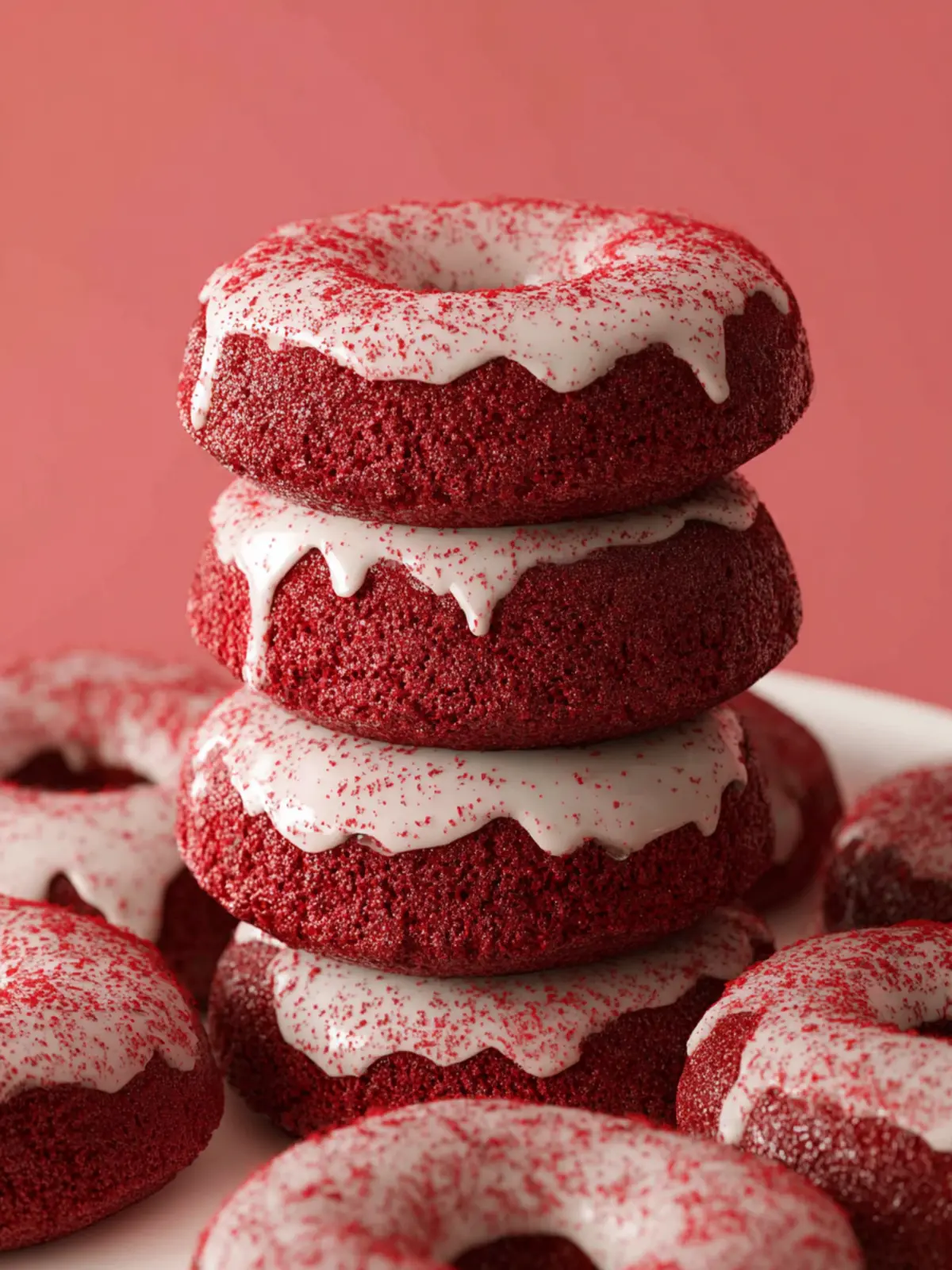 Vibrant Color & Rich Flavor: The stunning red hue of these donuts comes from the combination of cocoa powder and a touch of red food coloring (or better yet, natural beet juice for a healthier alternative). The deep flavor profile incorporates hints of vanilla and cocoa, making each bite an exciting burst of taste.