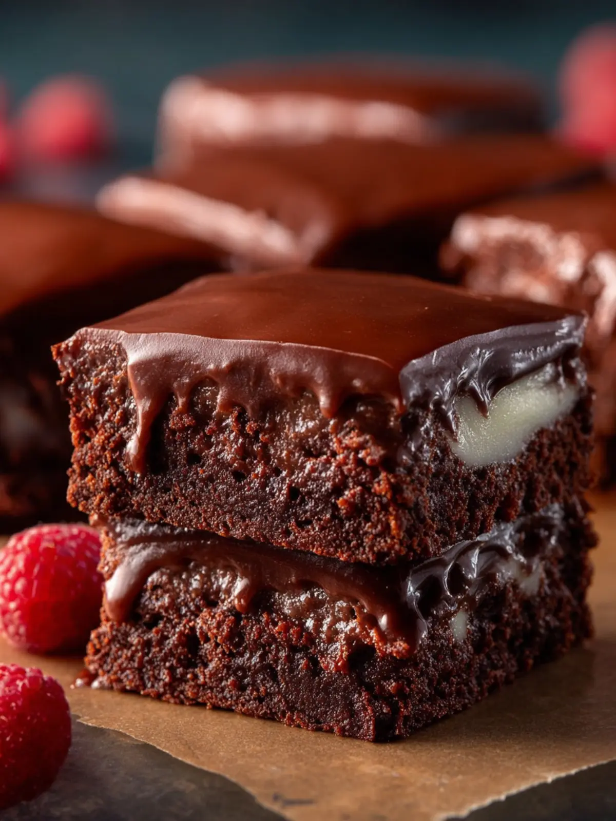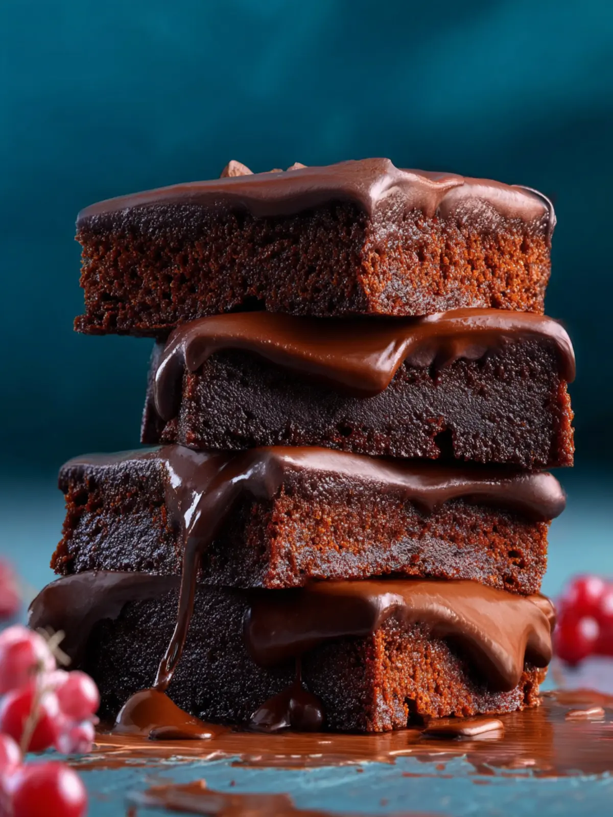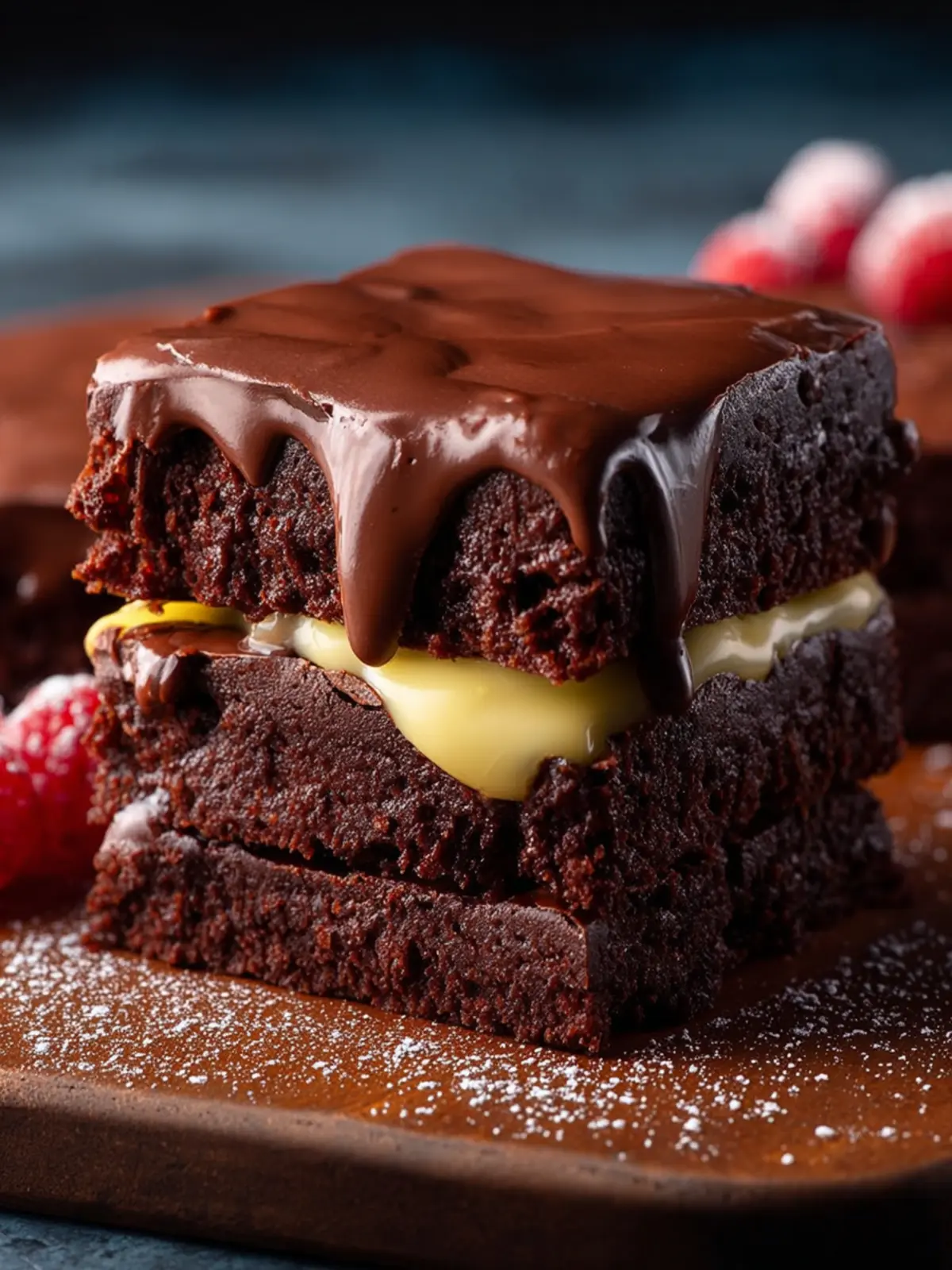 A rich and decadent layered chocolate brownie dessert that combines moist chocolate cake, creamy chocolate pudding, and silky ganache.