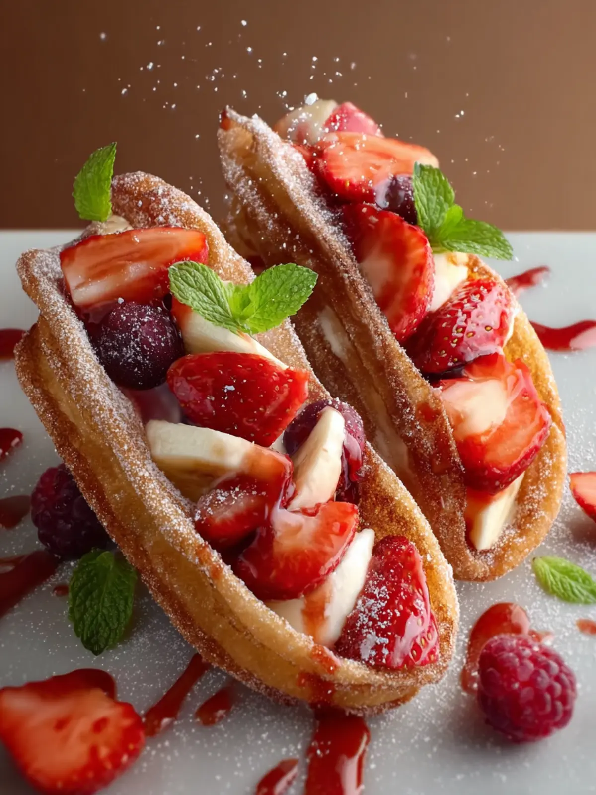 Not only do these tacos look beautiful, but the combination of textures—crunchy churro shell and soft, juicy fruit—creates an irresistible bite that’s both fun to eat and impressive to serve. Picture a small gathering where guests marvel at your culinary creativity as they indulge in these delightful treats.