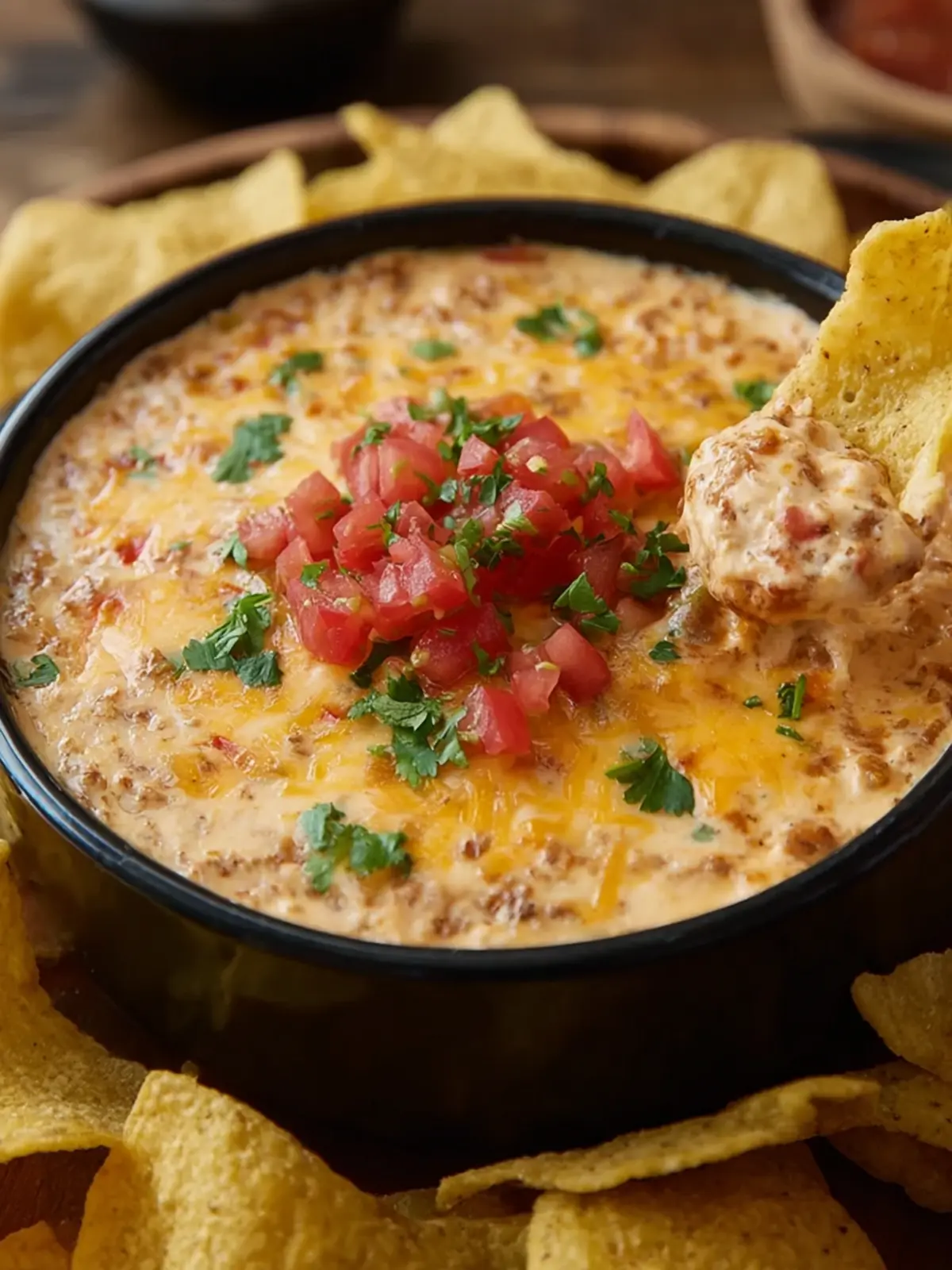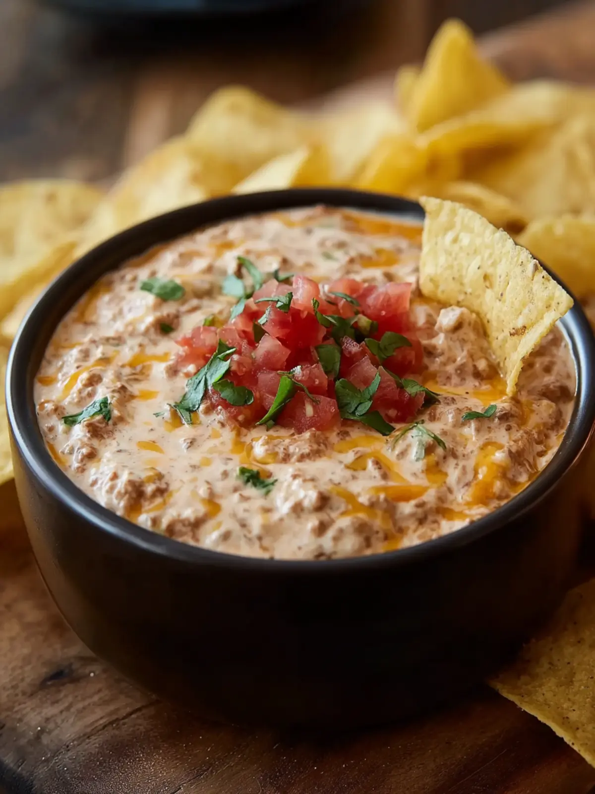 A creamy and delicious dip made with ground beef, Velveeta cheese, and Rotel tomatoes. Perfect for parties and gatherings!