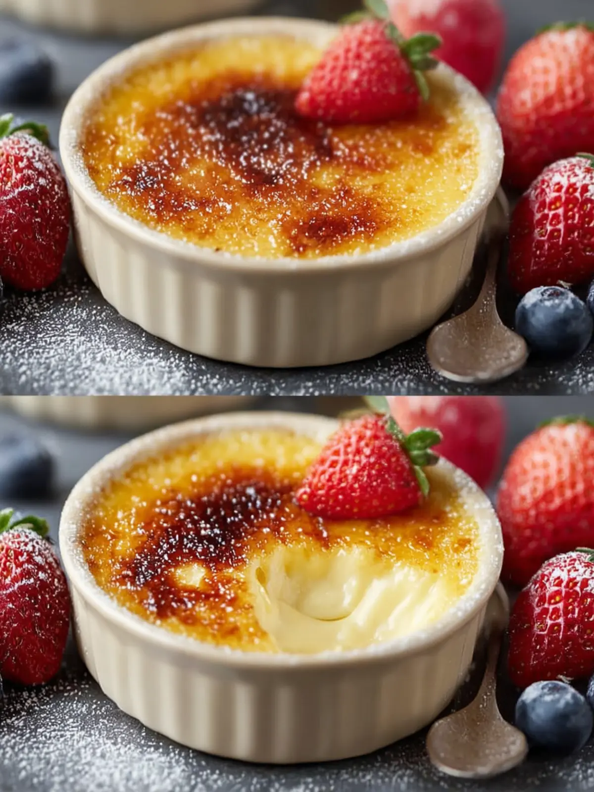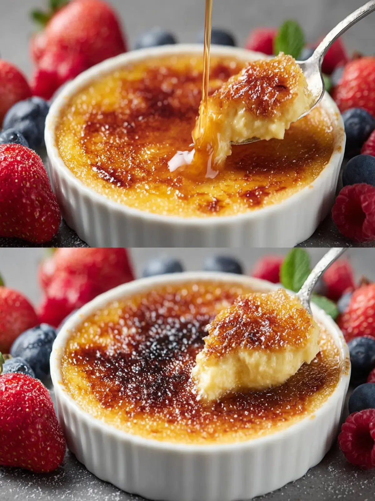A classic French dessert with a creamy custard base and a contrasting crunchy caramelized sugar topping.