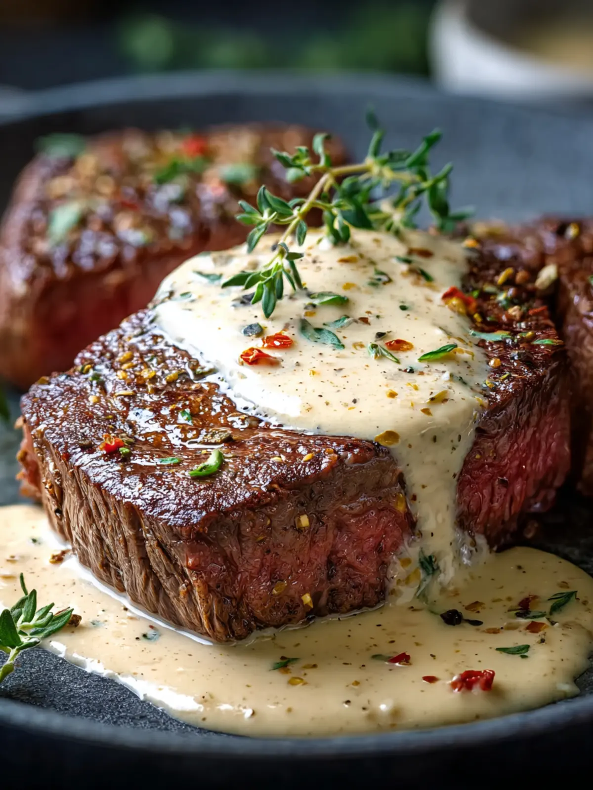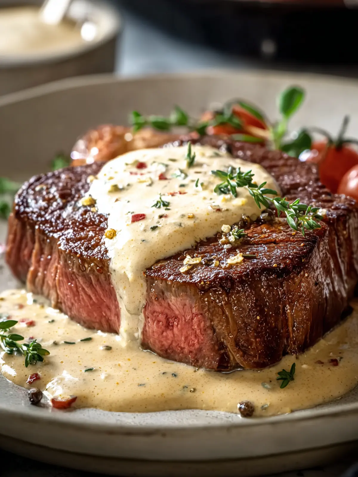 Impressive Presentation: Serving this dish is a feast for the eyes as well as the palate. The creamy sauce glistens on the steak, making it perfect for sharing via your latest Instagram post.