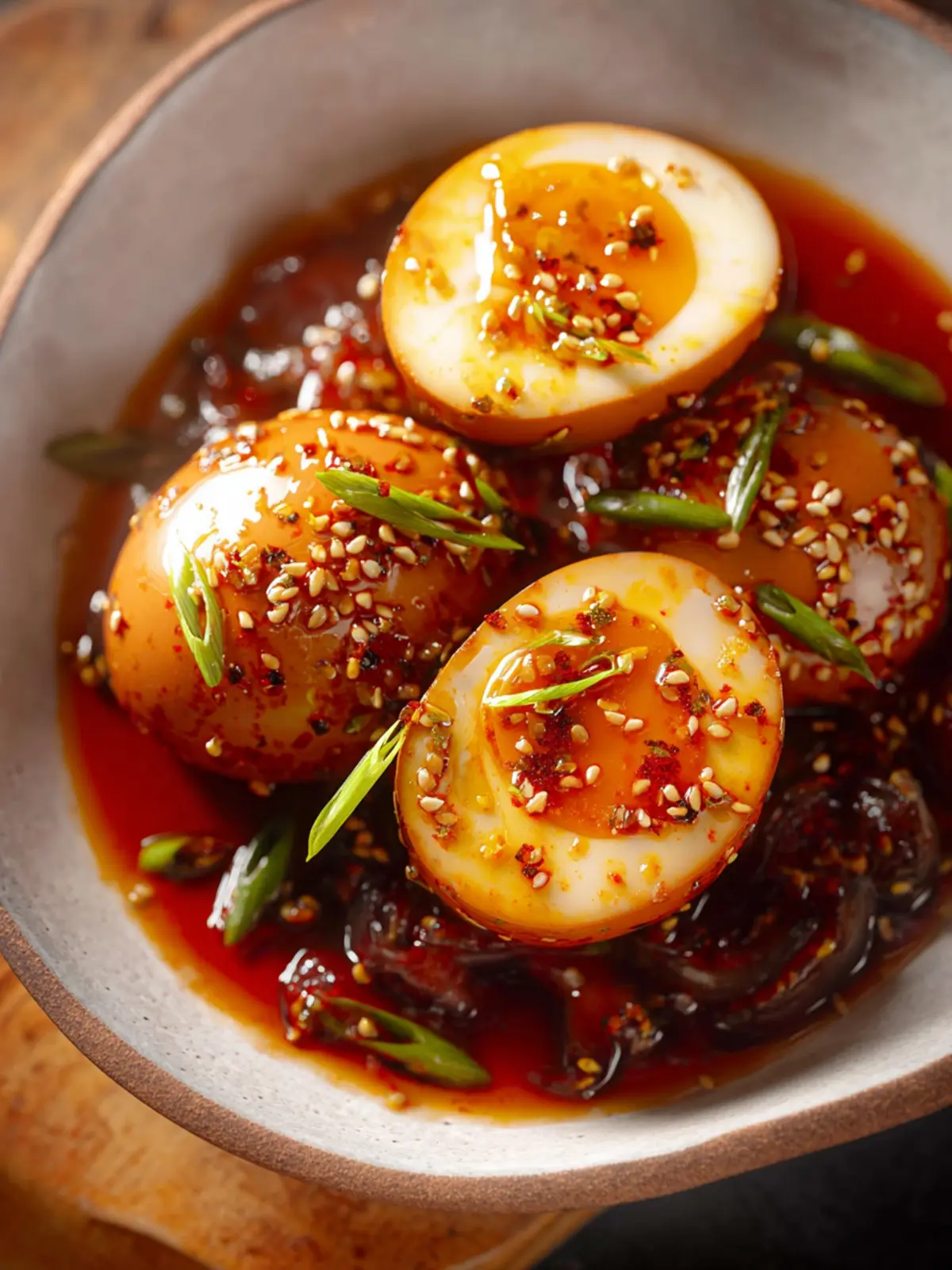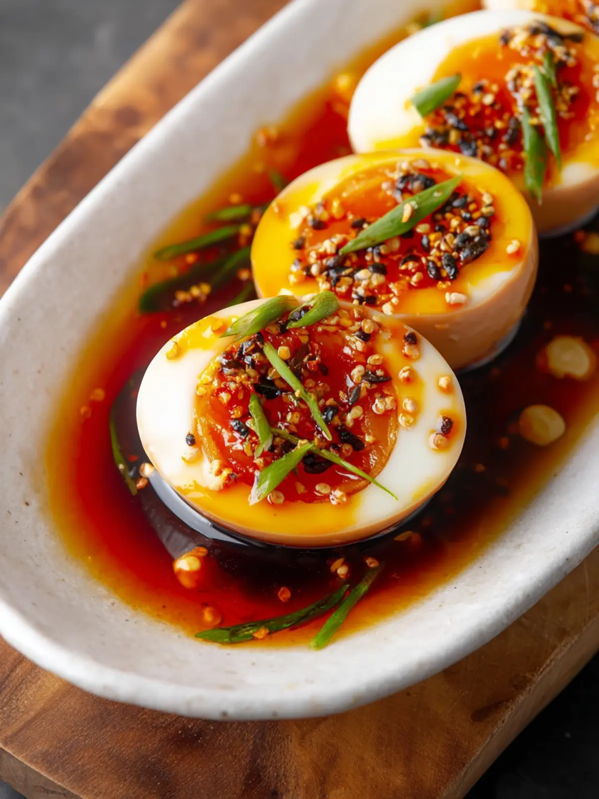 Feeling adventurous? Infuse your Korean marinated eggs with heat by incorporating gochugaru (Korean red pepper flakes) or chili oil. A pinch of these can add a nice kick that beautifully complements the umami flavors.